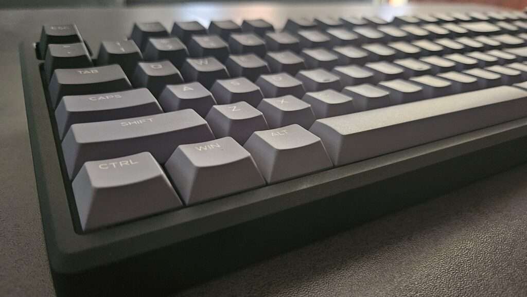 Il layout 1800 ANSI US rappresenta un buon compromesso tra compattezza e completezza: offre infatti tutti i tasti di una tastiera full-size, inclusi numerico e frecce direzionali, ma in uno spazio leggermente ridotto. A completare l’esperienza ci sono i keycaps in PBT double-shot e dye-sub, resistenti all’usura e con un profilo ergonomico che rende piacevole anche la scrittura prolungata.